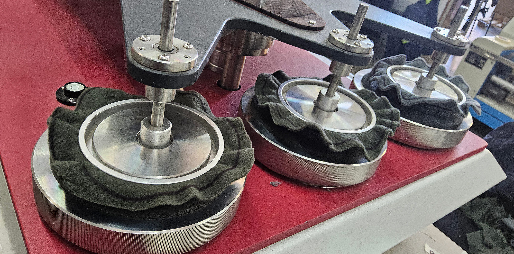 Para garantizar la máxima efectividad, nuestras telas se someten a pruebas de resistencia al desgaste, donde se evalúa la formación de pilling tras ciclos de fricción controlados.